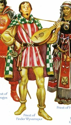 Finder's actual clergy is currently limited to a saurial priestess in the Lost Vale and a rebellious young bard from Berdusk who is presently adventuring in the Heartlands. Finder's clergy is likely to expand rapidly during the next few decades, and be composed of approximately 44% specialty priests,10% clerics,44% bards, with a handful(about 2%) of spellsingers.
