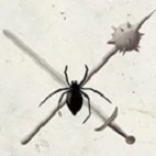 徽记SYMBOL:锤剑交叉为底,覆盖着蜘蛛Crossed sword and mace overlaid with spider image