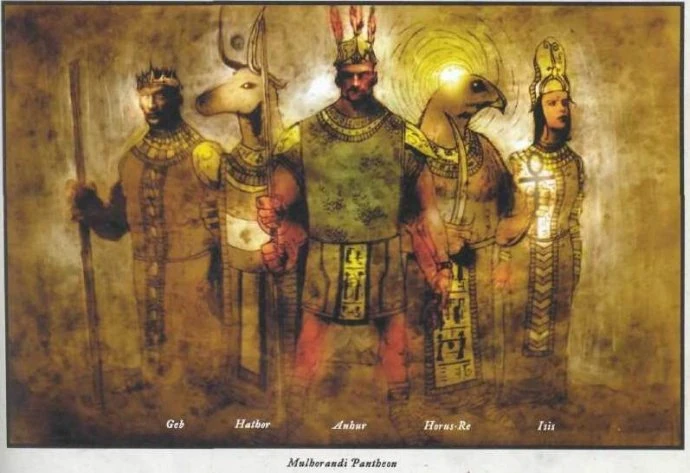 在 费伦大陆Faerûn,古老王国 穆尔霍兰德Mulhorand 是仅剩的几片居民不崇敬 泛费伦神系Faerûnian pantheon 的土地之一。一支名为 穆尔霍兰德神系Mulhorandi pantheon 的神祇家族,以绝对的神权统治着穆尔霍兰德。与穆尔霍兰德帝国的巅峰时代同步,他们的势力范围一度包含现在的 参法Semphar、穆洪Murghom、塞尔Thay、以及 落湮沙漠the Raurin desert 的土地,但目前他们的景况已大为下降。今日,这支神系在塞尔和参法得到的仅是象征性的承认(在那里 泛费伦神系the Faerûnian pantheon 占据了实际的统治地位),而在穆洪,他们的崇拜者群体在急速缩减。除了在 阙森塔Chessenta 边缘性的影响力外,该神系已迅速开始扩张其影响力到它古老的盟友与敌人——恩瑟Unther 的土地上。随着 恩瑟神系Untheric pantheon 的崩灭,对这个泛神神系而言,扩张的巨大机遇已经浮现,但穆尔霍兰德的诸神力们需要与远更生机勃勃的泛费伦神系争夺恩瑟民众的内心与灵魂。