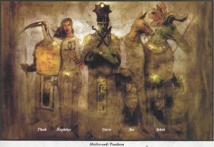 The ancient kingdom of Mulhorand is one of the last remaining lands in Faerûn whose inhabitants do not venerate the dominant Faerûnian pantheon. A family of deities, known as the Mulhorandi pantheon, rules Mulhorand as an absolute theocracy. At one point their sphere of influence incorporated the present-day lands of Semphar, Murghom, Thay, and the Raurin desert, corresponding to the height of the Mulhorandi empire, but their fortunes have since fallen considerably. Today the pantheon receives only token acknowledgment in Thay and Semphar (where the Faerûnian pantheon actually holds sway), and their flock of worshipers in Murghom is rapidly dwindling. In addition to marginal influence in Chessenta, the pantheon has rapidly begun to extend its influence into the land of Unther, its ancient ally and enemy. A great opportunity for pantheonistic expansion has emerged following the collapse of the Untheric pantheon, but the Mulhorandi powers are competing with a far more vigorous Faerûnian pantheon for the hearts and spirits of the people of Unther.