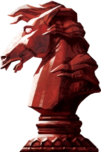 徽记SYMBOL:一只眼睛是星星的红色骑士棋子A red knight chess piece with stars for eyes
