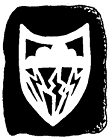 | 【徽 记】 | 一面描绘着一朵雷雨云的盾牌,三道闪电束从云中降下A shield showing a thundercloud with three lightning bolts descending from it |