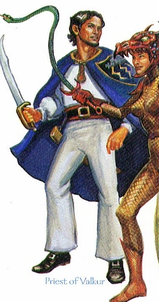 Some priests of Valkur captain sailing ships the length of the Sword Coast and across the Sea of Fallen Stars. Most serve as officers on some ship or other. Few priests of Valkur serve on pirate ships, but many enjoy serving their homelands as privateers. While in port, Valkur's priests provide care and small amounts of monetary support to sailors down on their luck and to families whose chief breadwinner has been lost at sea. Others priests run shipyards or administer fleets of merchant ships. Valkur's priests are also fond of contributing (if not totally sponsoring) seaborne exploration and long-distance trading expeditions because of the challenges and opportunities they present.