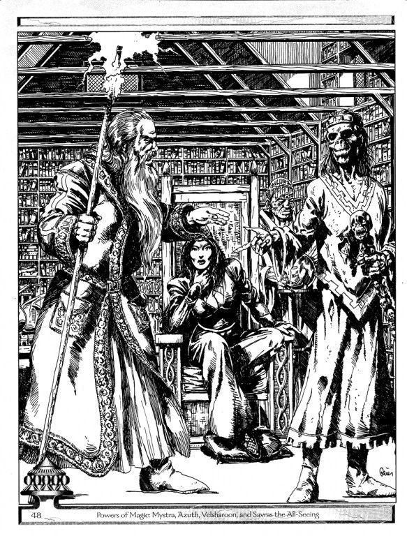 After reacquiring the relic, Azuth found himself troubled by Savras's long imprisonment. Following the Time of Troubles, the Patron of Wizards agreed to Savras's request to be released in exchange for a pledge of fealty by Savras to the High One. Today Savras is a demipower who serves Azuth, albeit uneasily. The two powers seem to be cautiously working toward friend-ship and a formal division of portfolios.