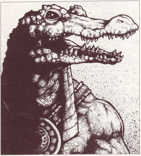 召唤鳄鱼Summon Crocodiles:鳄鱼人能召唤1d3条普通鳄鱼,在2d6轮后到达,并遵从他们的控制。